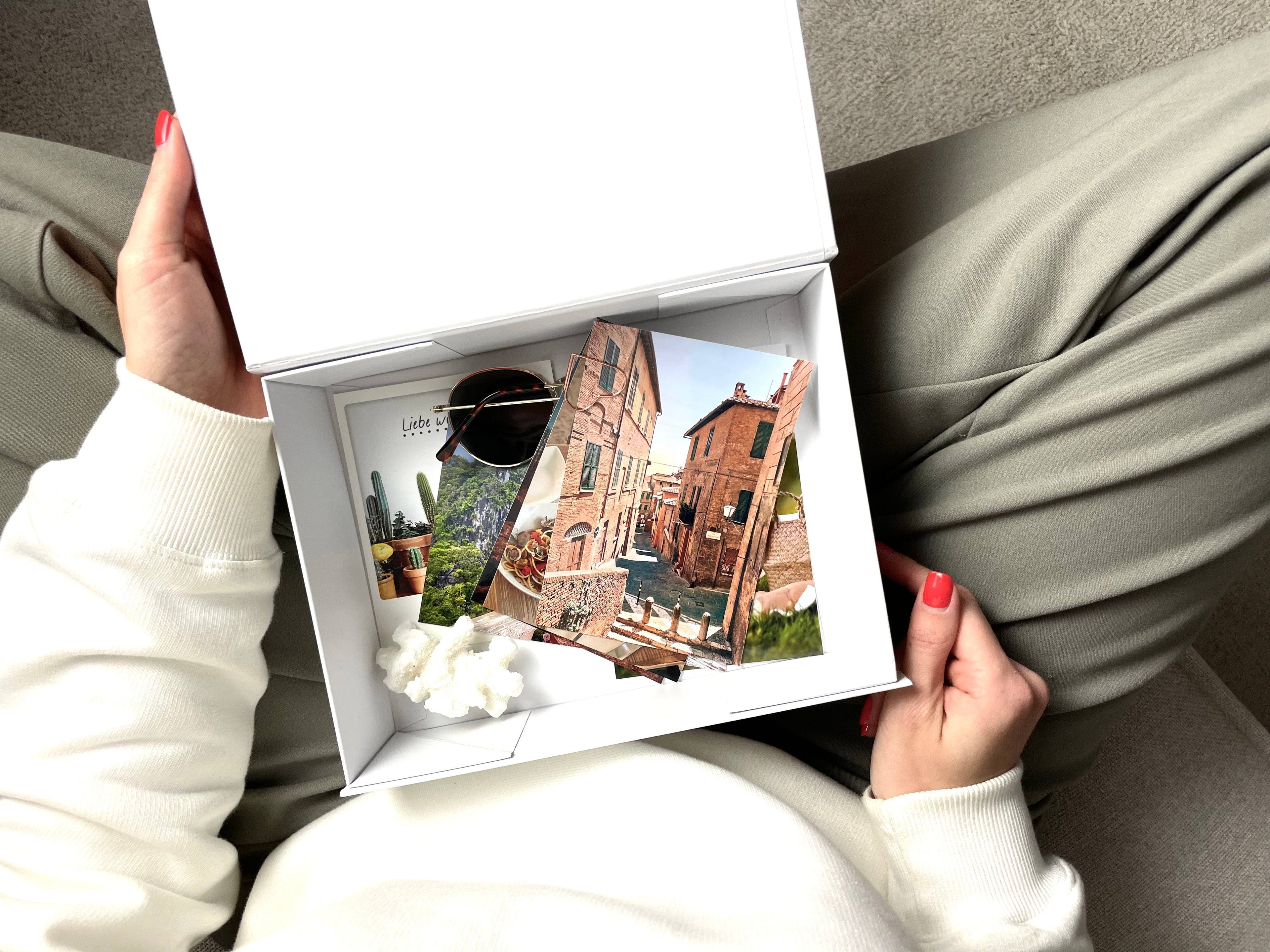 Wähle aus unserer vielfältigen Auswahl an Boxen, die speziell auf verschiedene Themen zugeschnitten sind. Ob es um die Liebe geht, um Reisen oder um familiäre Meilensteine – bei uns findest du die passende Box, um deine einzigartige Geschichte zu erzählen.